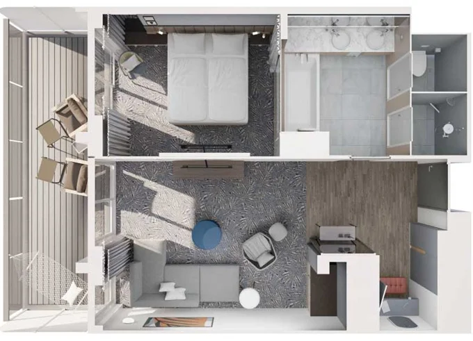 | JKAO - Junior Suite s balkonem 26 m² + balkon 7 m² se židlemi a podnožkami. 9-14. paluba. Max 4 osoby. Výhody Junior Suite. | 118 941 Kč 118 941 Kč za osobu |