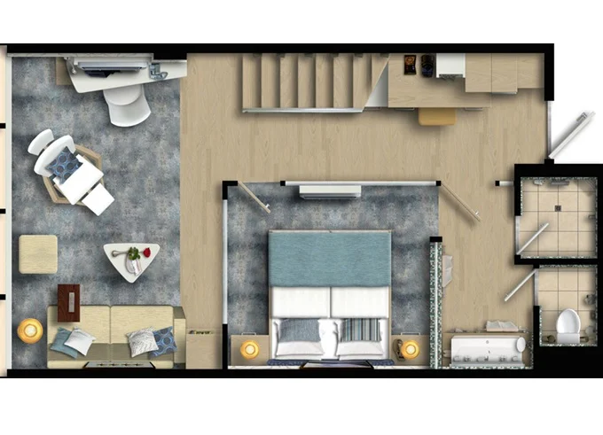 | SUDO - Diamant Suite 42 m² + balkon 47 m² se stolem se 4 židlemi, s houpací sítí, 2 lehátky a postelí Sun island. 2 ložnice, obývací pokoj, Herní konzole. 6. paluba. Max 6 osoby. Výhody Suite. | 228 799 Kč 76 266 Kč za osobu | ||