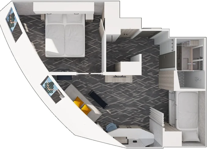 | JBCO - Junior Suite s balkonem C 26 m² + balkon 7 m² se židlemi a podnožkami. 7. paluba. Max 4 osoby. Výhody Junior Suite. | 183 436 Kč 91 718 Kč za osobu | ||